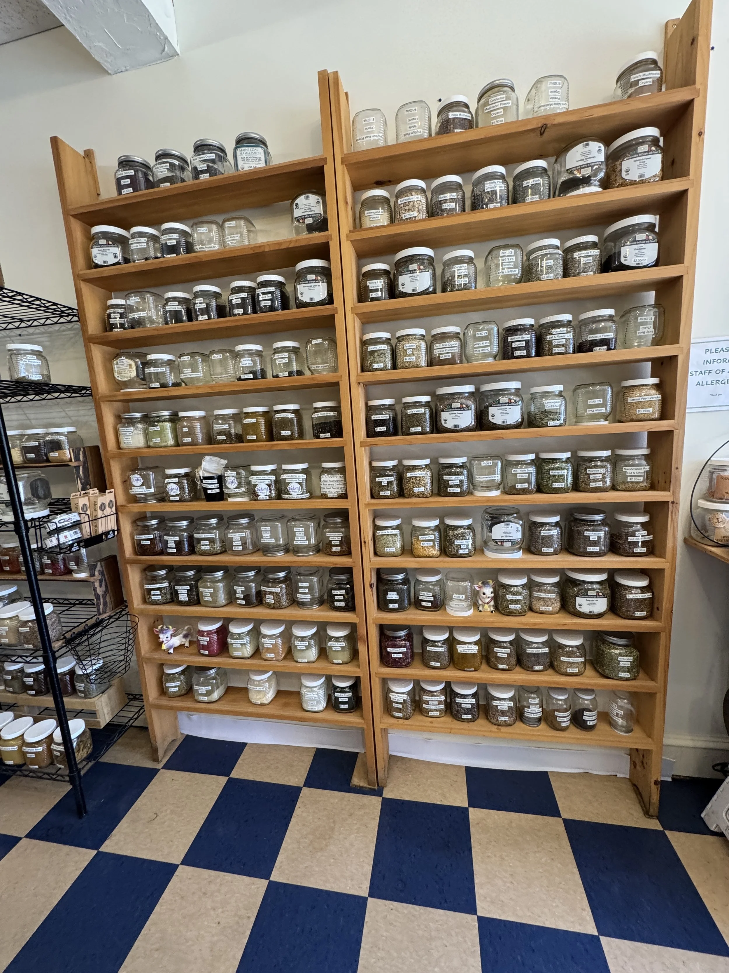 Stocked up on teas and delicious organic coffee and dark chocolate chips at my favorite old fashioned service natural bulk food tiny market.
